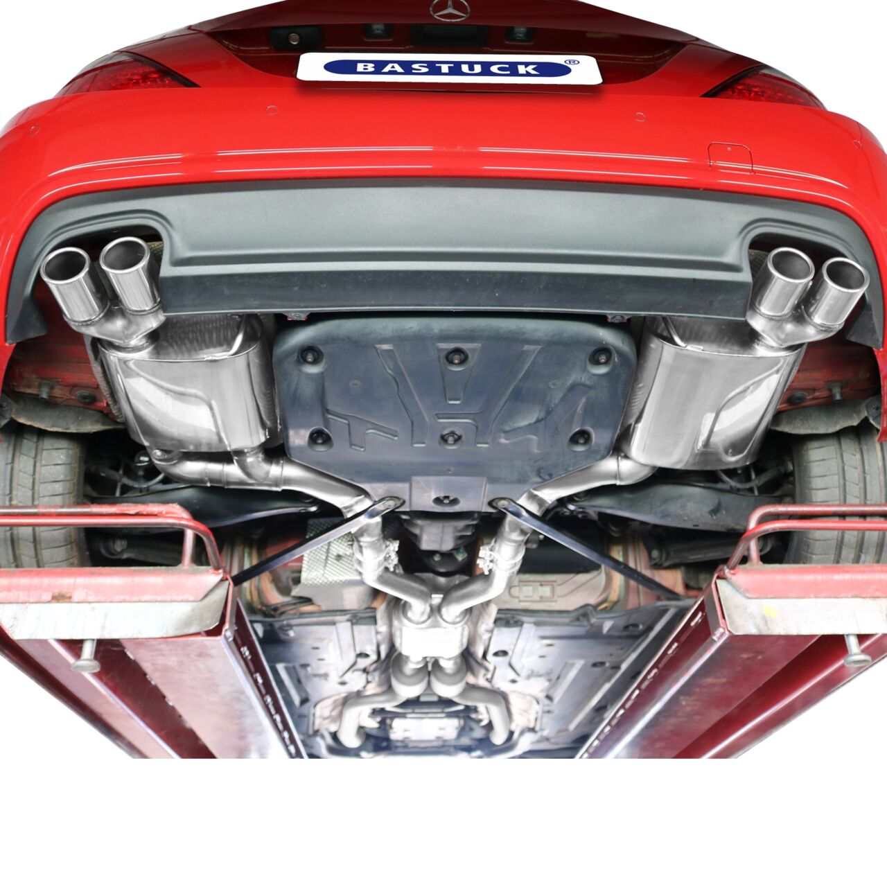 Schon der Mercedes SLK 350 ist weit davon entfernt, nur ein Basismodell zu sein. Die sportlichen Gene ziehen sich optisch und auch leistungsbezogen durch, was uns dazu veranlasst hat, eine Sportauspuffanlage zu entwickeln, die ebenso sportive Züge zeigt. Ergänzend dazu statten wir den SLK 350 mit dem BASTUCK-typischen sonoren Sound aus, den wir im Soundfile eingefangen haben.